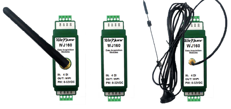 WJ160 遠程I/O模塊,可以用來測量四路開關量信號。可做為4路計數器或者4路頻率轉速測量。